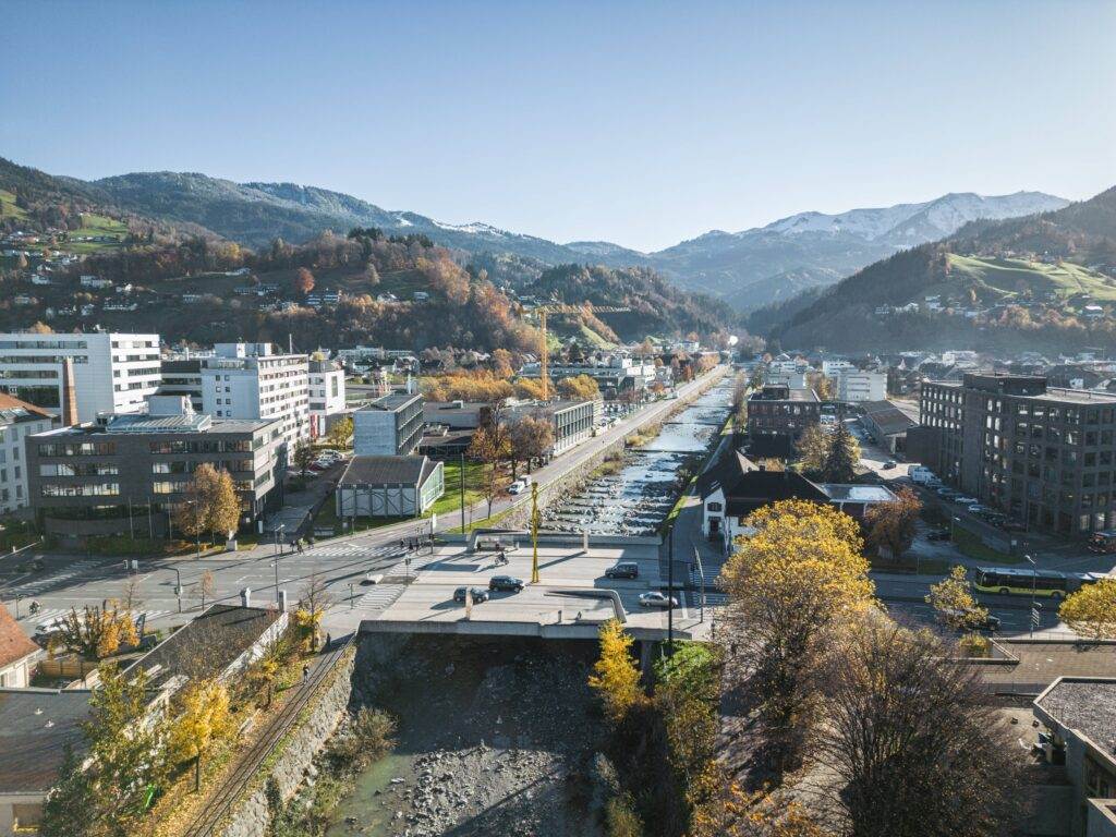 Dieses realutopische Zukunftsbild des Campus Vorarlberg zeigt, was möglich sein kann, wenn Innovation in Vorarlberg gebündelt, Urbanität gefördert und die Modernität mit etablierten Traditionen und Strukturen in Einklang gebracht werden. Die Grafik wurde von der Industriellenvereinigung Vorarlberg in Auftrag gegeben, mit Reinventing Society konzeptioniert und von loomn grafisch umgesetzt.
